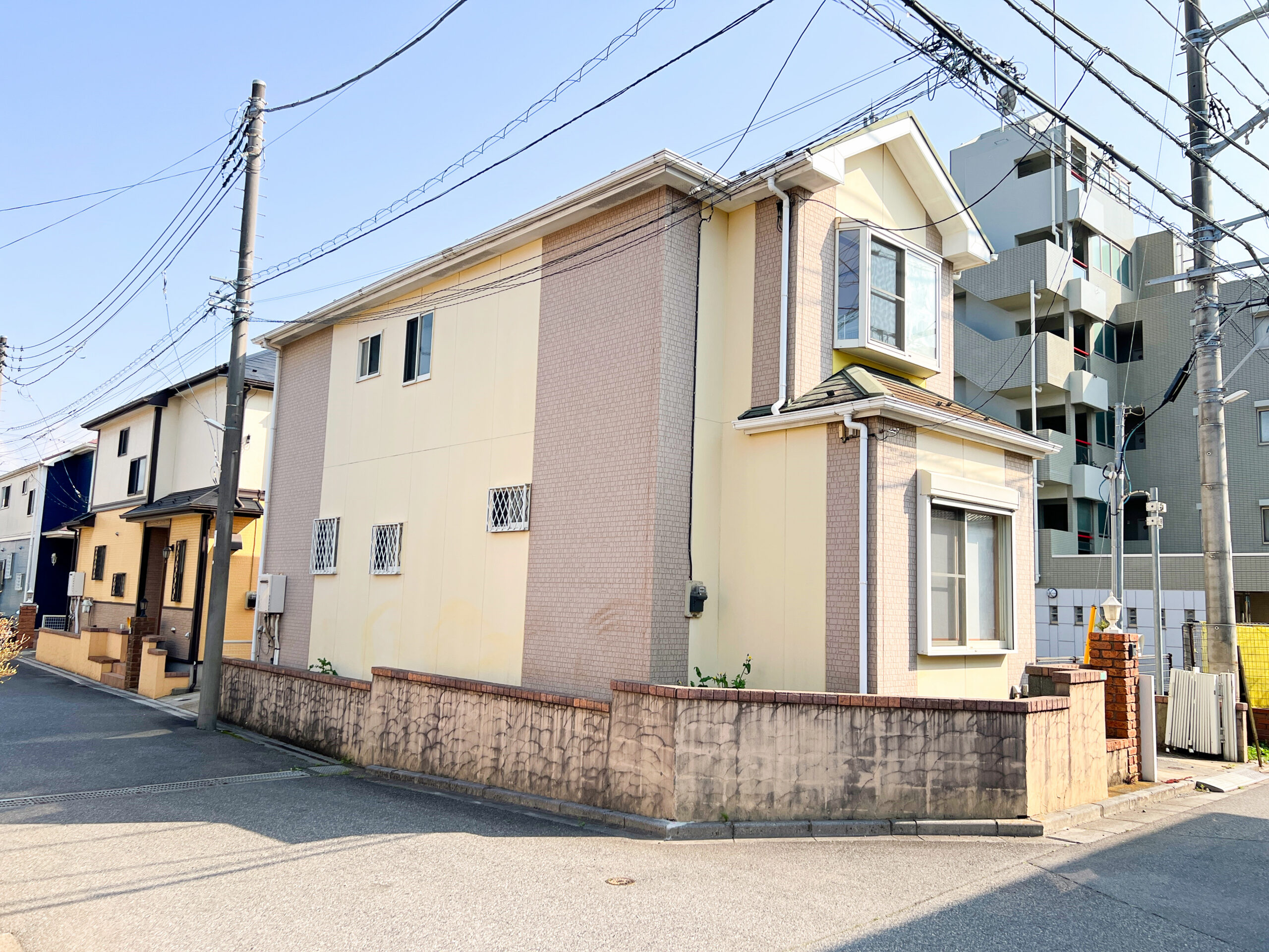 2002年築の開放感あふれる角地住戸。前面道路は約5.0m×5.2mとゆとりがあり、周囲に圧迫感のない立地が魅力です。陽当たり・通風にも優れ、明るく心地よい住環境を実現します。